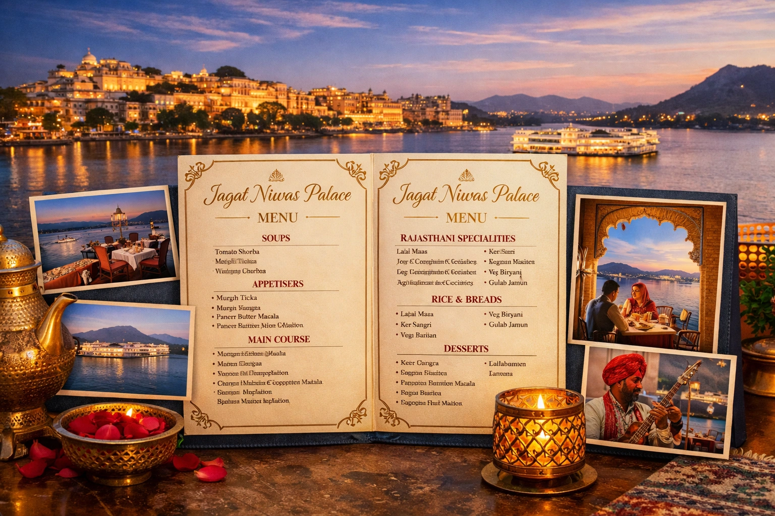 Jagat Niwas Palace offers an unmatched dining experience that blends royal heritage, authentic Rajasthani flavors, and breathtaking lake views. Whether you’re exploring the menu for a romantic dinner, planning a family celebration, or simply craving authentic local cuisine, this heritage restaurant consistently delivers excellence. The historic hotel has beautifully preserved its 250-year legacy while adapting to modern dining expectations and global tastes.