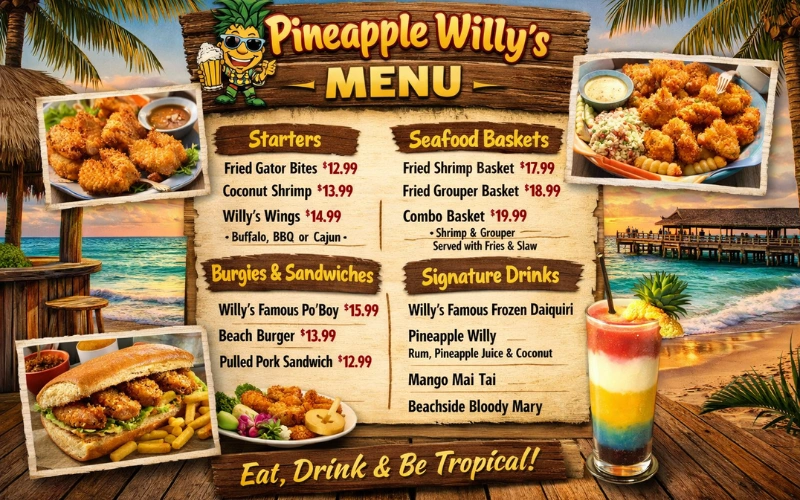 Pineapple Willy’s Menu: A Complete Guide to Panama City Beach’s Iconic Dining Spot